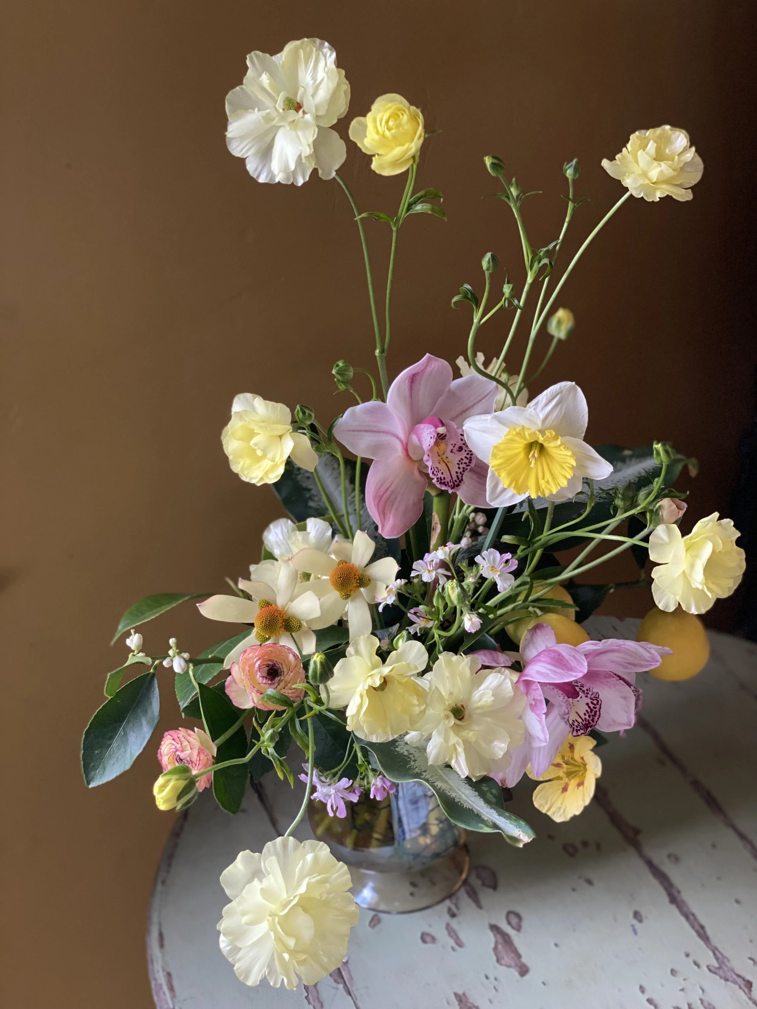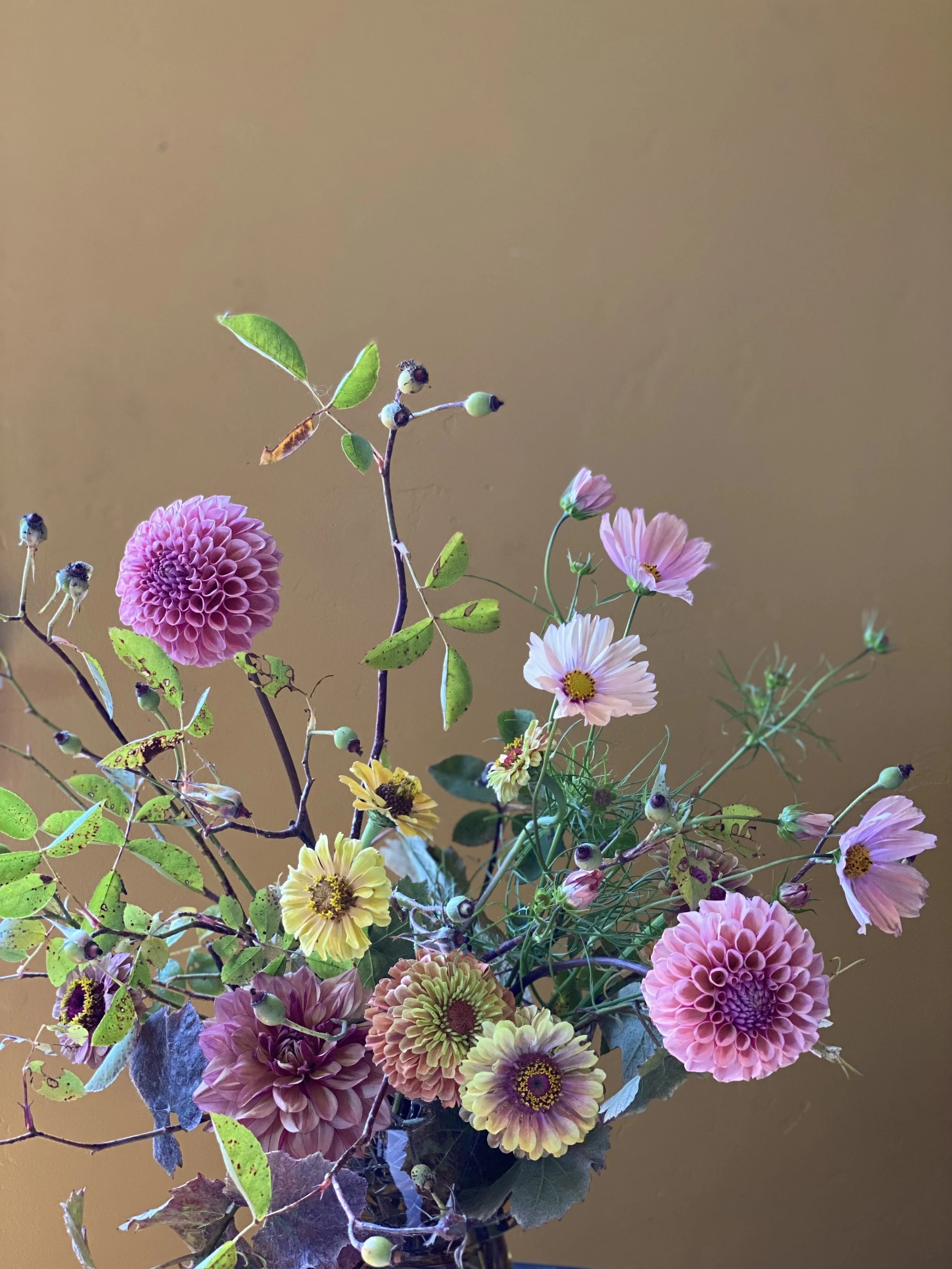 Coastal California—the roll of the fog, the sunny blue noons, the golden hour light washing the hills, the sea wind. Fennel forests, poppies studding the roadside. Our flowers are local and seasonal to reflect the dappled, ever-shifting beauty that surrounds us with such abundance.